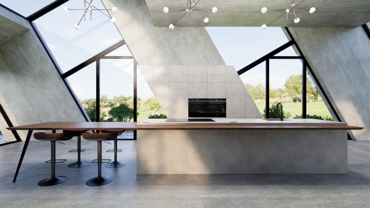 Après une première place en 2021 avec notre cuisine en béton incliné dans une maison de style brutaliste épuré, une troisième place en 2022 notre cuisine blanche station lunaire, nous remportons cette année la seconde place grâce à notre cuisine japandi en béton et bois dans une habitation troglodyte moderne.